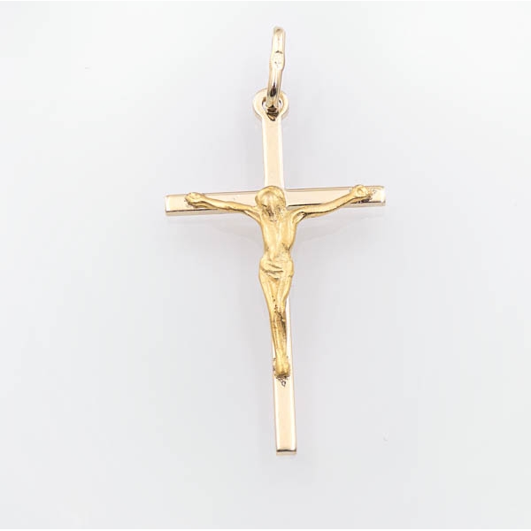 Klasyczny krzyżyk wykonany z najlepszej jakości żółtego złota próby 585 – 14 karat. Forma szlifowana na wysoki połysk, zdobiona perfekcyjnie wykonaną postacią Jezusa Chrystusa. Idealny prezent na Komunię Św. czy bierzmowanie.