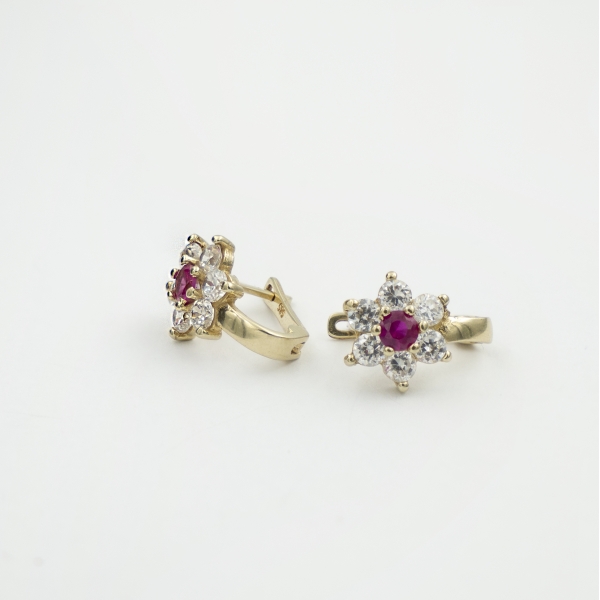 Śliczne kolczyki w kształcie kwiatuszków wykonane z najlepszej jakości próby 585 – 14 karat, zdobione różowymi i białymi cyrkoniami, co nadaje całości dodatkowego uroku. Idealny prezent dla ukochanej osoby bądź uzupełnienie wieczorowej czy codziennej stylizacji.