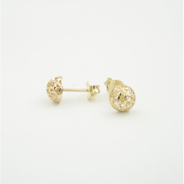 Śliczne kolczyki wykonane z najlepszej jakości próby 585 – 14 karat. Ażurowe półkule nadają całości nadzwyczajnego charakteru i niespotykanego uroku. Zapięcie typu sztyft, potocznie nazywane wkrętkami. Idealny prezent dla ukochanej osoby bądź uzupełnienie wieczorowej czy codziennej stylizacji.