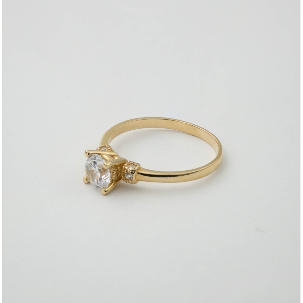 Piękny pierścionek wykonany z najlepszej jakości próby żółtego złota 585 – 14 karat, szyna zdobiona w punkcie centralnym pojedynczą białą cyrkonią osadzoną w oprawie typu chaton. Po bokach – wokół szyny – maleńkie cyrkonie w kolorze białym w oprawie typu kanałowym tzw. channel setting. Idealny prezent dla ukochanej osoby bądź uzupełnienie wieczorowej czy codziennej stylizacji, będzie też doskonałym wyborem na zaręczyny.