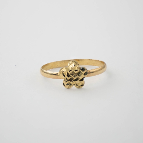 Piękny pierścionek wykonany z najlepszej jakości próby żółtego złota 585 - 14 karat. Górka w kształcie kwiatu zdobionego na całej powierzchni precyzyjnymi żłobieniami w kształcie szachownicy, pięknie mieniącymi się w słońcu, nadaje całości niesamowitego uroku. Idealny prezent dla ukochanej osoby bądź uzupełnienie wieczorowej czy codziennej stylizacji.
