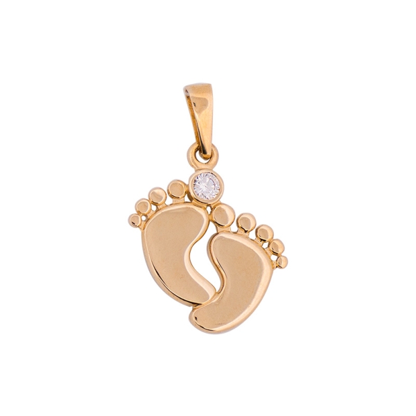 Piękna przywieszka wykonana z najlepszej jakości próby złota 585 - 14 karat. Precyzyjnie wykonana forma w kształcie niemowlęcych stópek ozdobionych pojedynczą cyrkonią, nadaje jej nadzwyczajnego charakteru. Idealny prezent dla dziewczynki z okazji Chrztu Św. komunii czy innej okazji jak i również dla przyszłej mamy.