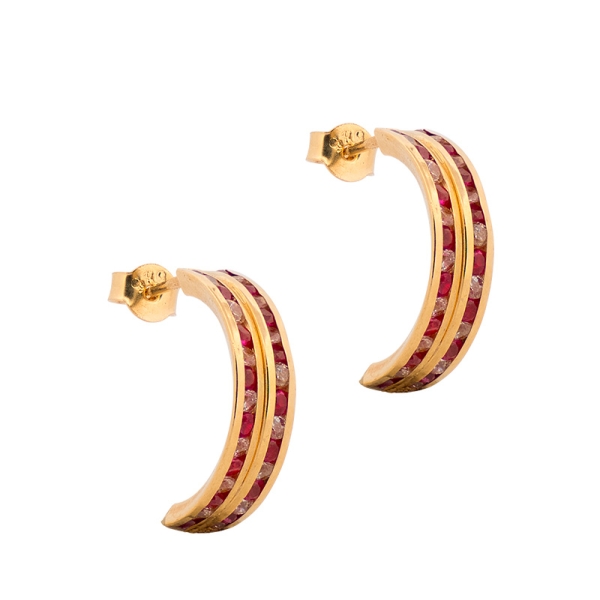 Piękne kolczyki wykonane z najlepszej jakości żółtego złota próby 585 – 14 karat, dmuchane. Precyzyjnie wykonana forma w kształcie półokręgu, wysadzana różowymi i białymi cyrkoniami, nadaje im nadzwyczajnego charakteru. Zapięcie typu sztyft, potocznie nazywane wkrętkami. Idealny prezent dla ukochanej osoby czy też ozdoba codziennej bądź wieczorowej kreacji.