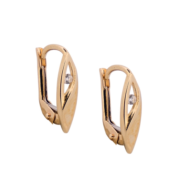 Piękne kolczyki wykonane z najlepszej jakości próby żółtego złota 585 – 14 karat. Precyzyjnie wykonana forma w kształcie sopla wysadzanego cyrkonią w kolorze bieli, nadaje im niezwykłego uroku. Zapięcie typu bigiel angielski - odmiana lira. Idealny prezent dla ukochanej osoby czy też ozdoba codziennej bądź wieczorowej kreacji.