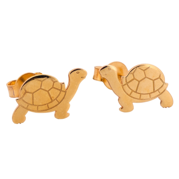 Urocze kolczyki wykonane z najlepszej jakości próby 585 – 14 karat. Precyzyjnie wykonana forma w kształcie żółwia, nadaje im niezwykłego uroku. Zapięcie typu sztyft, potocznie nazywane wkrętkami. Idealny prezent dla dziewczynki z okazji urodzin czy innej specjalnej okazji.