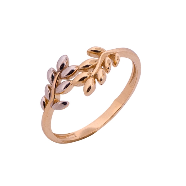 Olśniewający pierścionek wykonany z najlepszej jakości próby żółtego złota 585 – 14 karat. Szyna zdobiona motywem liści szlifowanych na wysoki połysk, co nadaje całości dodatkowego uroku i nadzwyczajnego charakteru. Część listków została pokryta diamentowanym białym złotem. Idealny prezent dla ukochanej osoby bądź uzupełnienie wieczorowej czy codziennej stylizacji.